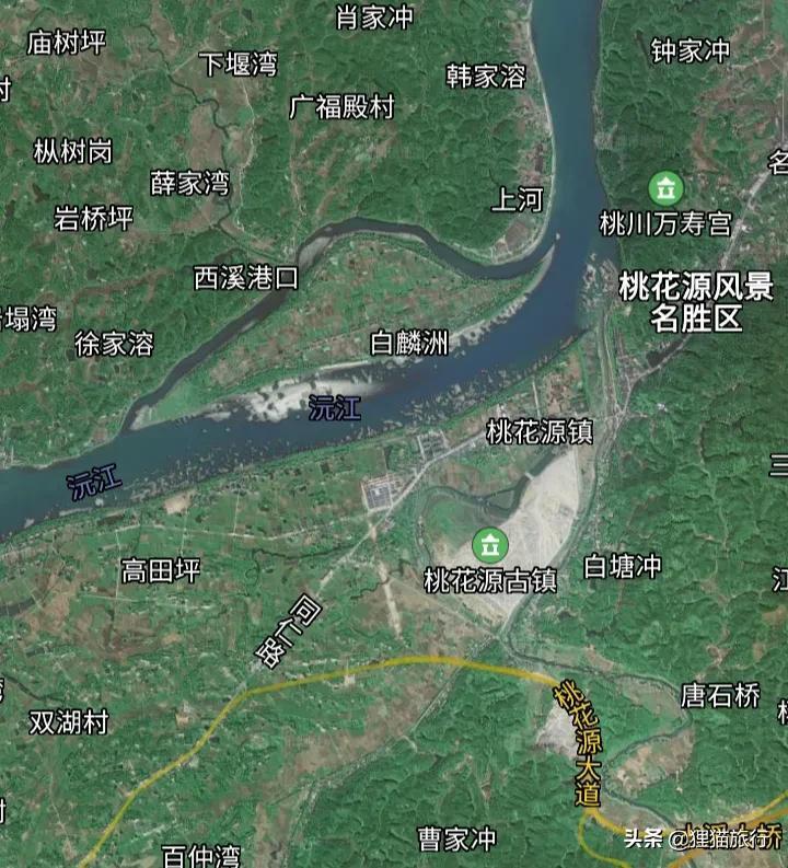 白鳞洲北边是武陵渔村,南边是桃花源镇