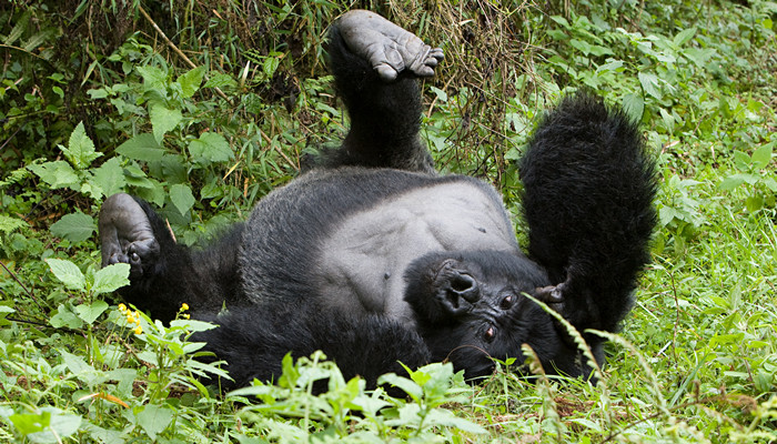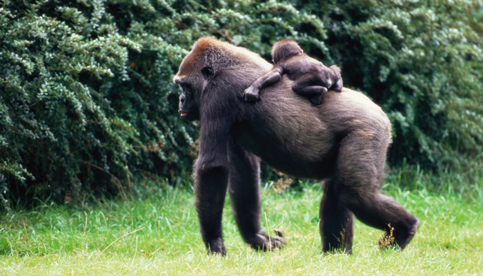 大猩猩,是灵长目人科人亚科大猩猩属类人猿的总称。分两个物种,东非大猩猩和西非大猩猩。是现存所有灵长类中体型最大的种,四足状态肩高0.85米左右,站立时高1.6到1.8米。直立的大猩猩可达1.75米高,因为大猩猩的膝盖无法真正伸直,所以其实际身长比这个高度还要长一些。雄性比雌性体大。