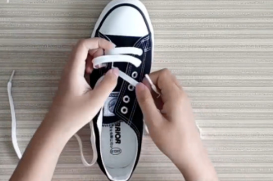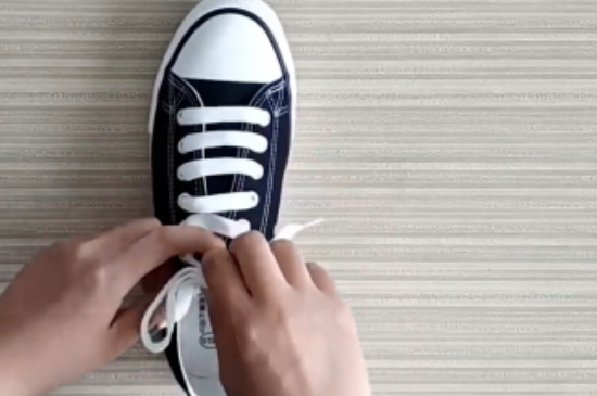 将携带穿入第一排绳口后,调整两边鞋带至一样长短,再把右边鞋带穿入右边第二个绳口,左边鞋带穿入左边第三个绳口。之后将右边鞋带穿入左边第二个绳口,再把左边鞋带穿入右边第三个绳口,最后重复这个步骤穿完所有绳口,最后打好结系上就完成了。