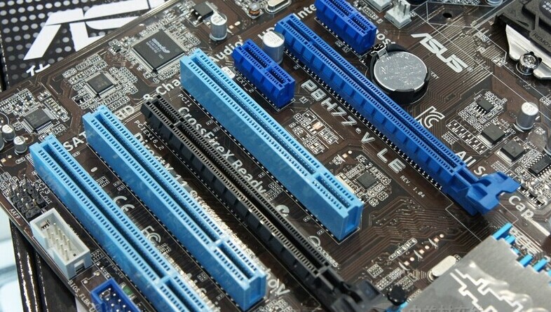 2、对于主机的插槽,这里来简单的介绍一下。蓝色的两根长的,都是PCIE插槽,插显卡的;中间的白色的2个,是PCI插槽,插声卡这类的。