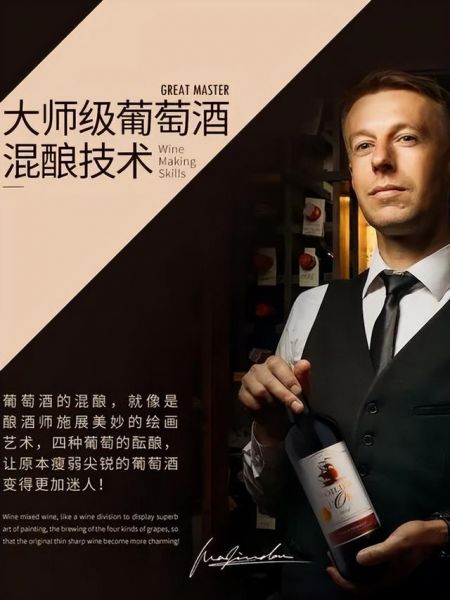 在详情页中,有一张穿西装外模手持产品推荐的照片,下方写着“法国高档餐厅指定用酒”。