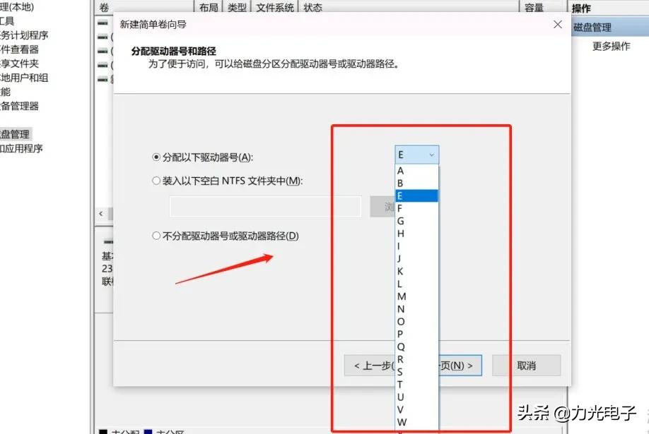 这里可以选择你的新磁盘的盘符,小黑建议按照系统磁盘顺序去选择。(由于小黑仅仅是给大家做示范,就弄个R盘试一试,反面教材,勿学!)