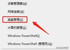 第一步:通过使用键盘快捷键【WIN+X】,点击【磁盘管理】。