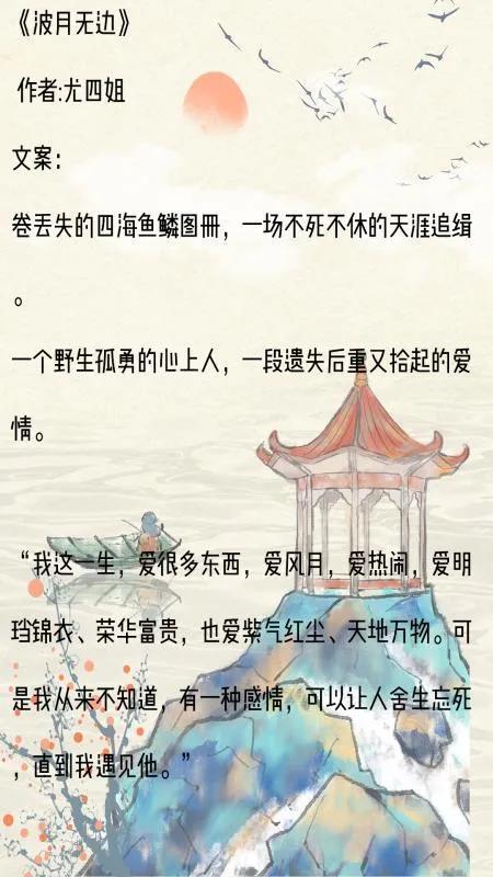 8.《波月无边》集玄幻、仙侠、甜宠、博弈、复仇等多种爱情元素于一体,一本就让你体验各种爱恨交织,尤四姐的文基本可以盲入,文笔没得说。