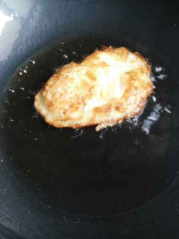 步骤3.煎至两面金黄,捞起,再打入一个鸡蛋依次煎好