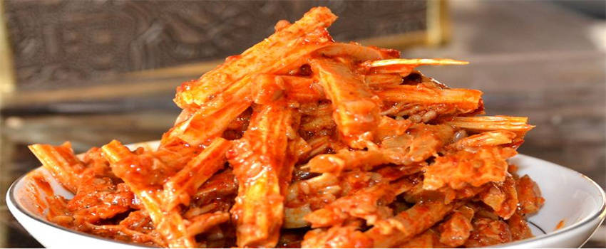 所形成的血水及时的倒掉,再将牛板筋清洗干净。一旦牛板筋清洗干净之后,将牛板筋放到高压锅里面,放入调味品,香葱,姜,大料,料酒等等。一般利用高压锅压制