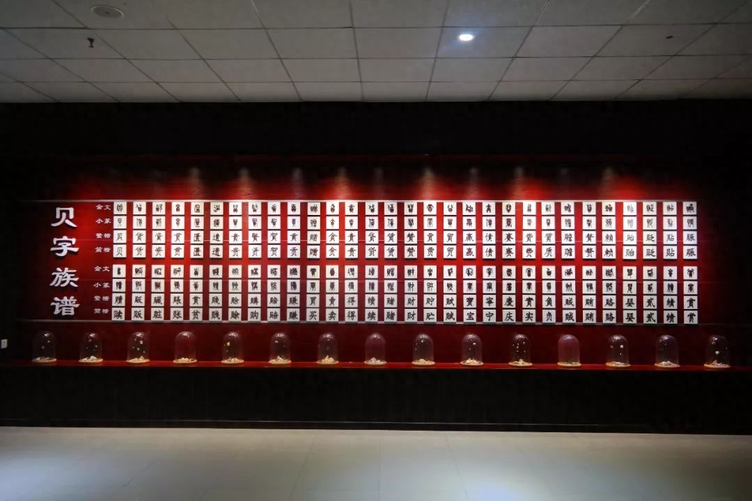 博物馆里展出的“贝字族谱”很有意思,听听讲解员的讲解,就能知道原来古代的字(金文)就跟画一样,有着形象的意思。