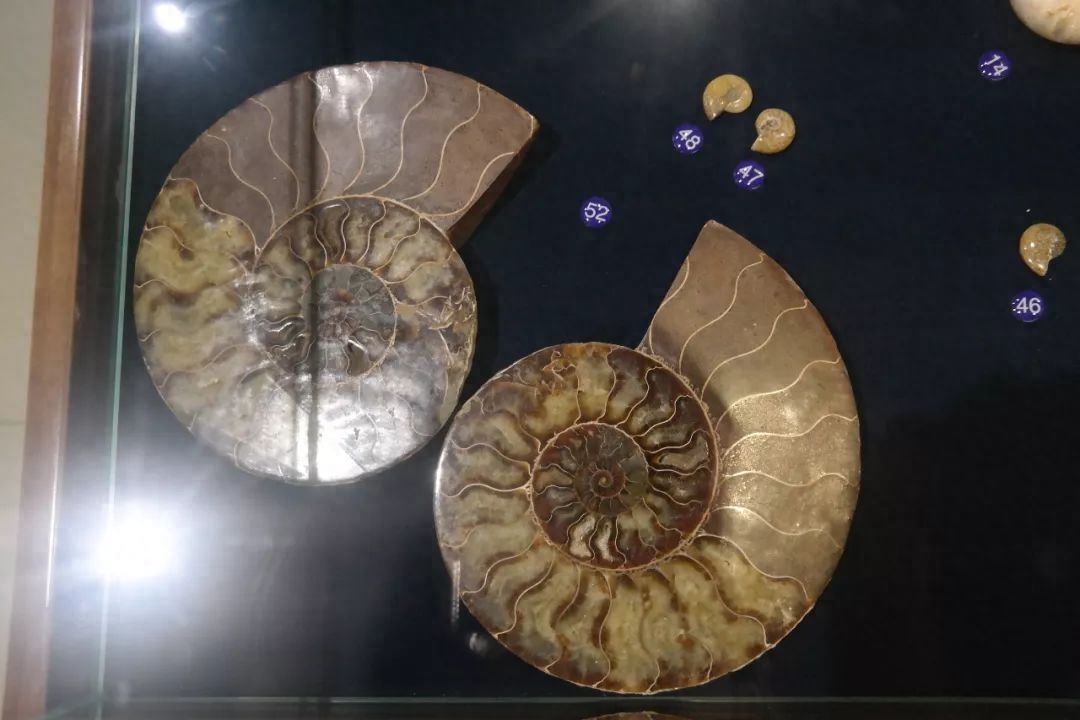 大小各异的鹦鹉螺化石: