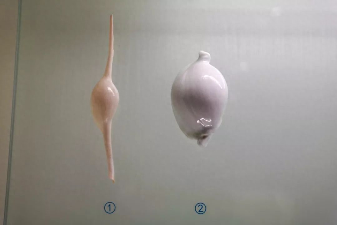 长菱角螺和海兔螺:二者均属于海兔螺科。因其洁白如瓷,外壳形似驯良温柔的白兔,故而得名。