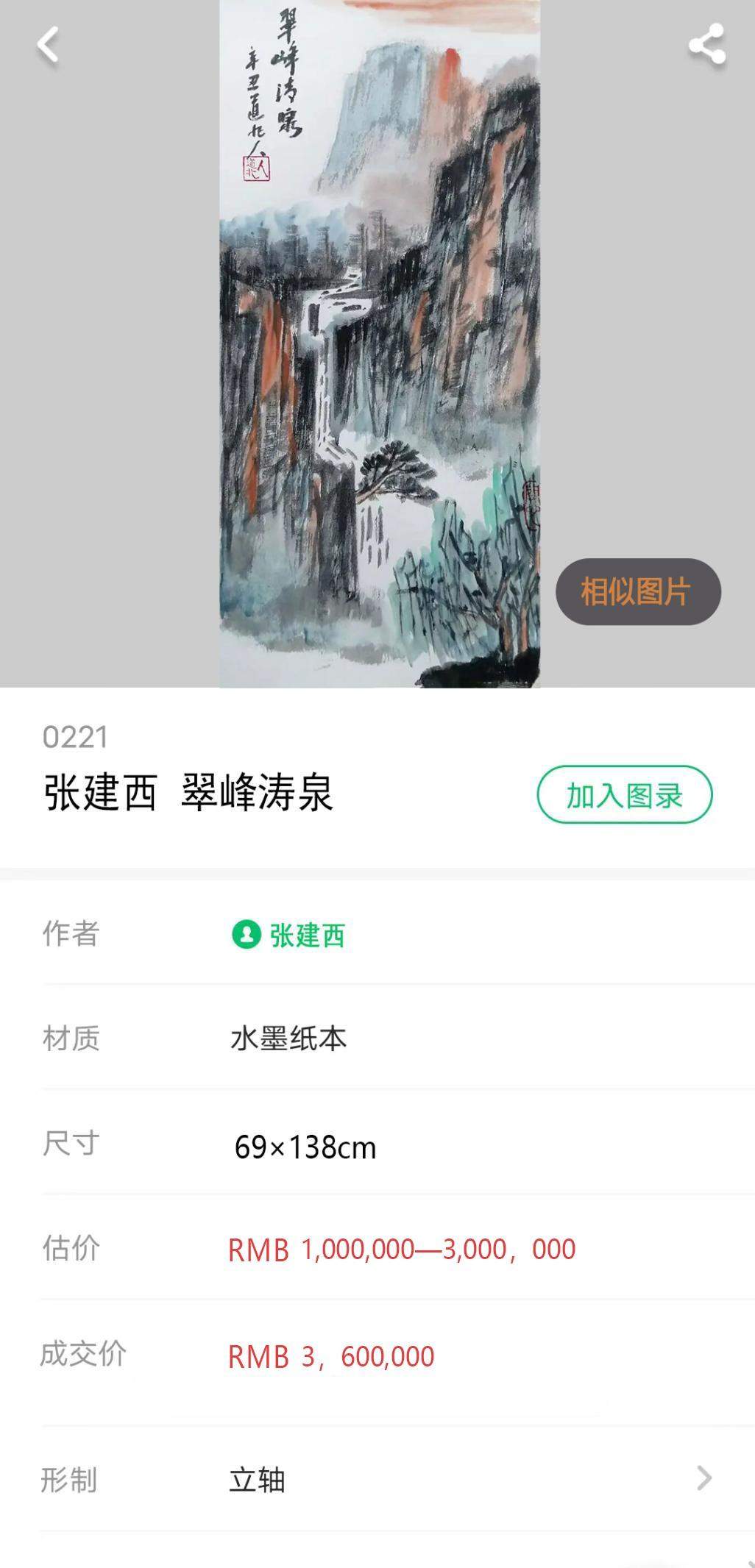 2018年3月4日,张建西以2017年度公开拍卖市场作品总成交额3600万元人民币名列《2020胡润中国艺术榜》第69位。