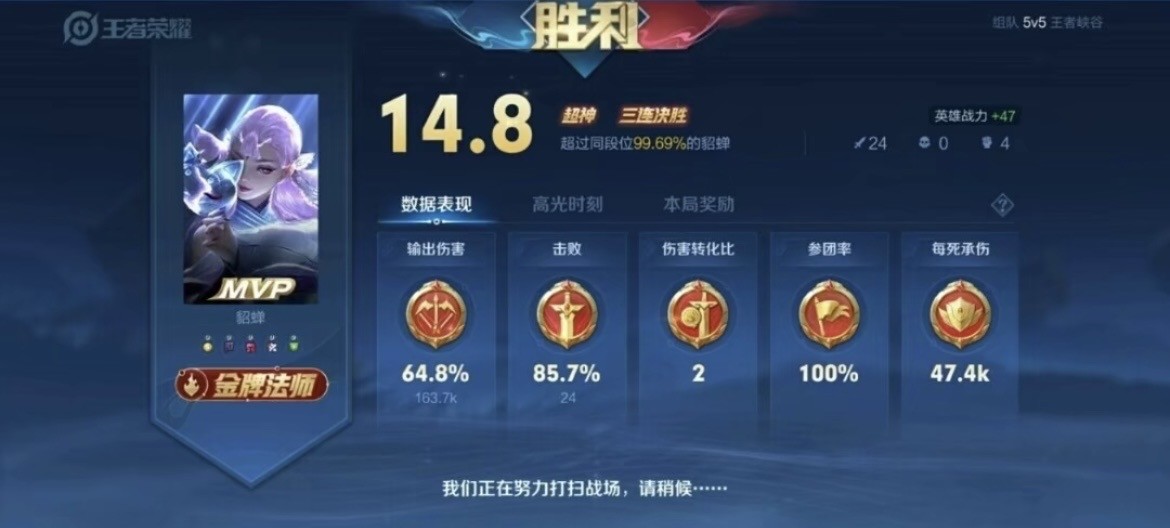 1、团战时要灵活利用二技能,一旦控住对面的脆皮英雄,就不要吝啬使用一、三技能,配合队友完成击杀,但妲己一定要注意自身的安全,防止被敌方刺客近身击杀,团战前要留住二技能保命。