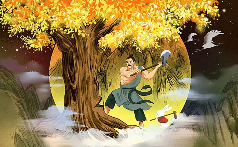 段成式的代表作《酉阳杂俎》(俎:zǔ)中记载了吴刚伐桂的神话。传说月亮上有棵桂树高达五百杖,吴刚因学仙术违规,被罚在月宫砍伐桂树,每砍一斧头,桂树的伤疤都会立即愈合,因此吴刚常年在月宫砍桂树,而终究是砍不到树。关于桂树的神奇故事被古人演绎出很多个版本,在唐宋两代尤其盛行。月中桂树又被叫做娑罗树,骞树。月中桂树的果实在每年四五月后飘落人间,称为“月中桂子”。反映了古人深深的相信月中有树这一传说。文人墨客每当中秋,都会吟诗作对,把月中桂树以及桂子作为典故使用。因为这一传说,所以人们将月亮又叫做“桂月,桂宫,桂窟,桂轮”等。