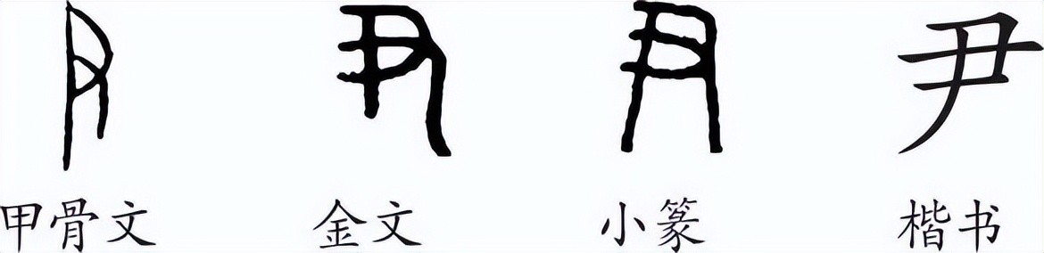 尹(yǐn)字初文始见于商代甲骨文及商代金文,会意字。