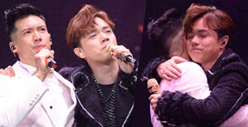 两人当时的反应有些尴尬,只是稍微互相拥抱,直到合唱《笑忘书》,二人才控制不住情绪,落下男儿泪并紧紧拥抱。