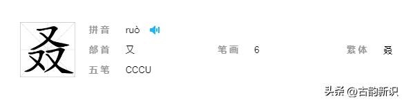 那么,“叒”字它的汉语拼音是怎么读的呢?且看下方: