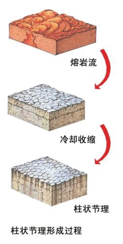 岩浆房中的岩浆通过火山通道向上运移在火山口喷发或向四周流动,当火山活动停止以后,火山通道中的岩浆就会冷却形成柱状节理。