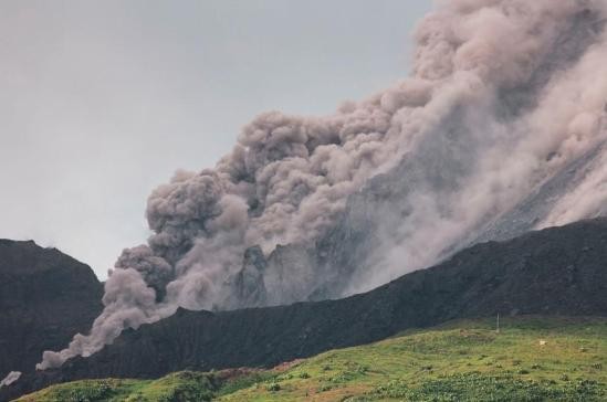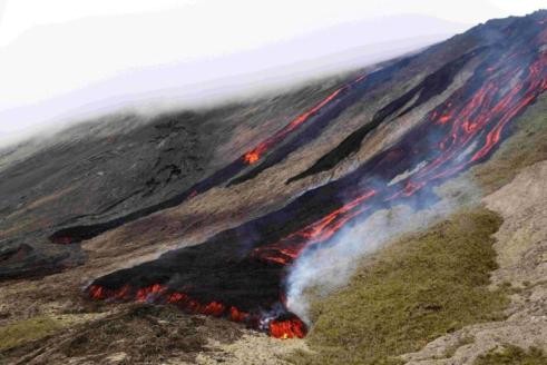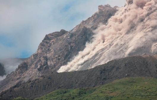 火山喷发的物质主要有两种类型,一类是包含碎石、火山灰、气体和液体的火山碎屑流。