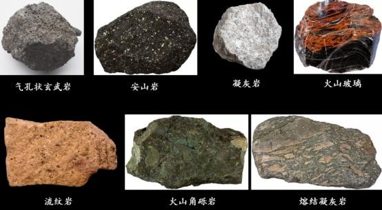火山活动形成各种类型的火山岩,常见的火山岩有玄武岩、安山岩、凝灰岩、火山角砾岩等等。
