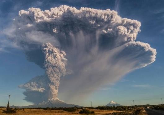 在喷发过程中,火山通道中的巨大的碎石降落在火山口附近,细小的火山碎屑则降落在火山锥附近,火山喷发形成的烟柱可以达到数公里,火山灰在大气中漂移可达上千公里。