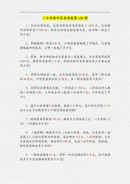 三年级数学:100道经典奥数题,提升逻辑思维,吃透逆袭98分!
