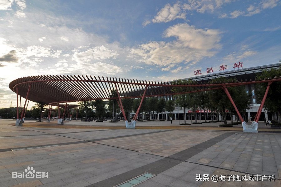 1976年,花艳站建成,2009年,花艳站改造完成并更名为宜昌东站,2012年7月1日,新宜昌东站正式开通运营。宜昌东站占地面积1.6万平方米,总建筑面积2.3万平方米,站台规模为5站台9到发线。