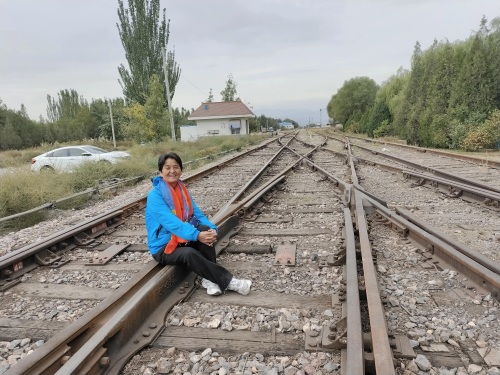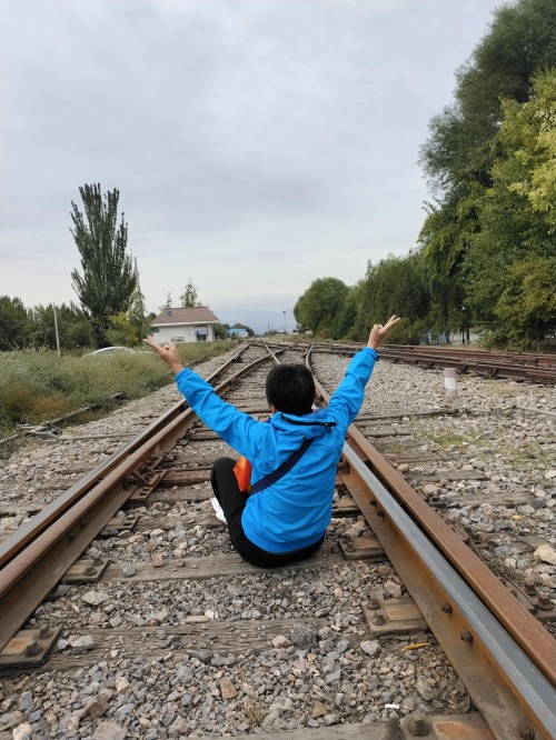 《文章可以分享转载,严禁剽窃》 在文昌公园的围栏里看见外面那锈迹斑斑的铁轨,心里亲切感油然而生。走出公园来到了银川火车站通往各大工厂和贺兰山飞机场的岔线上。自从17年铁中68届年级大聚会,很多珍贵的老照片源源不断的飞进我的微信,特别是卢姐姐她们3个下乡知情在火车头的留影更是看直了我的眼球。从小听着火车隆隆声长大的我们居然没有一张和火车头的合影,看着老爹爹一张张在火车头跟前的合影羡慕死了,现在废弃的铁轨上拍张像,聊解心中的遗憾。