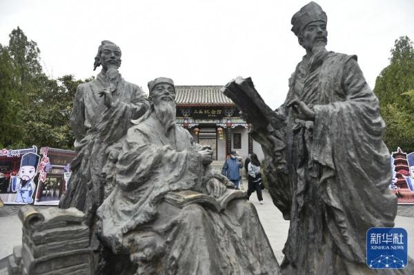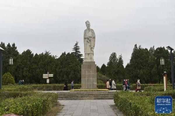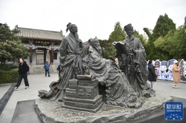 ↑11月10日,游人在郏县三苏园参观三苏纪念馆。