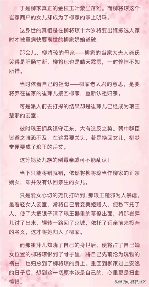 崔萍儿就是被琼娘顶替身份的倒霉正主,娇滴滴的官家小姐,被养成了粗鄙、奸猾的市井小民,还被送做暴戾阴狠的琅王做妾,她恨命运不公,恨琼娘才情过人,恨半生尽毁~