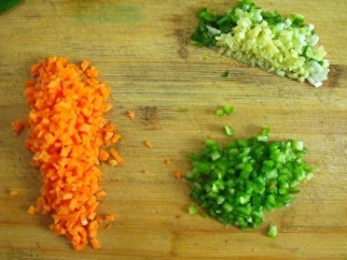 2、胡萝卜、秋葵、洋葱切成小颗备用