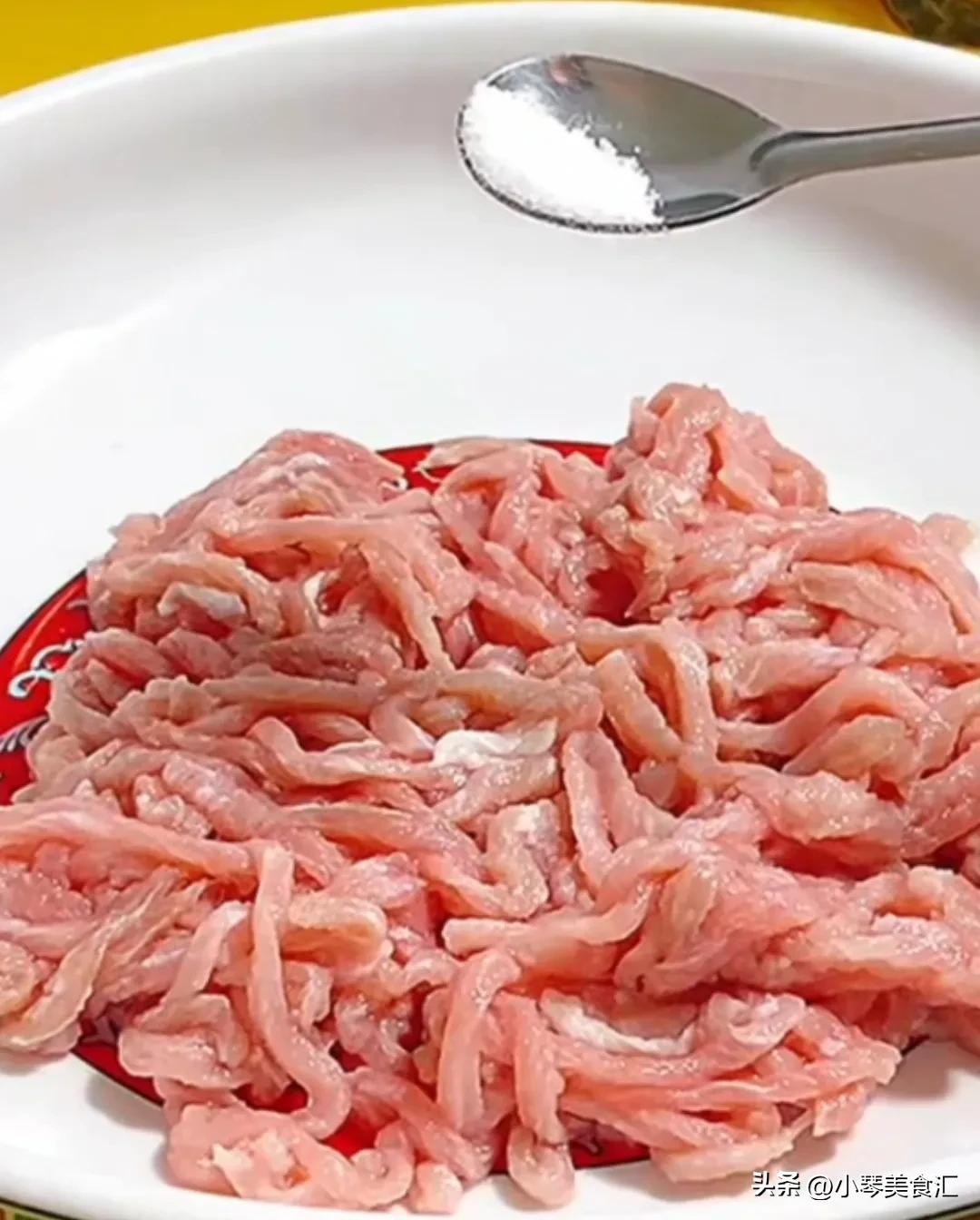 5. 锅中油温三成热下入肉丝,小火把肉丝滑熟滑散,捞出控油备用。