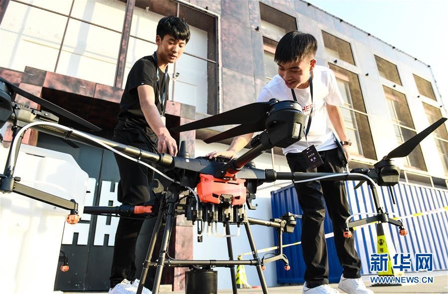 11月5日,植保无人机飞手在发布会外了解大疆新款植保无人机T20。 当日,大疆农业发布新款植保无人飞机T20,播撒系统2.0,以及相关服务保障、培训赋能计划等。此次发布的T20每小时实际作业效率180亩次,配置了全向避障雷达,采用点云成像,除了可360度感知农田障碍物并自动绕障外,还可实现定高作业。 新华社记者 毛思倩 摄