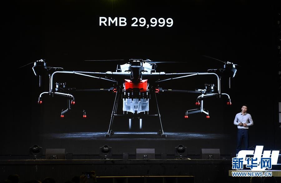 11月5日,大疆农业全球市场销售总监陈韬介绍新款植保无人机T20。 当日,大疆农业发布新款植保无人飞机T20,播撒系统2.0,以及相关服务保障、培训赋能计划等。此次发布的T20每小时实际作业效率180亩次,配置了全向避障雷达,采用点云成像,除了可360度感知农田障碍物并自动绕障外,还可实现定高作业。 新华社记者 毛思倩 摄