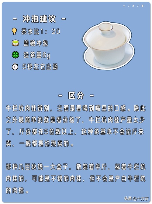 牛栏坑肉桂辨别,主要是看喝到嘴里的口感。除此之外最简单的就是看价格了。牛栏坑肉桂产量太少了。斤价都在5位数以上,这种茶基本不会论斤来卖,一般都是论泡卖的。