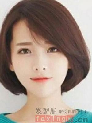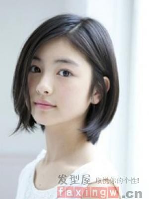 这是一款很适合学生妹纸的中年短发发型,内扣的发尾,搭配上偏中分的发型,白皙的脸蛋,简单清新可人。