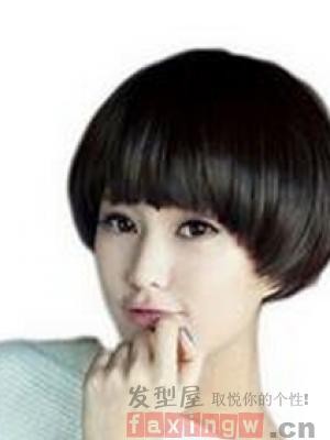 这是一款很受学生妹纸喜爱的齐刘海的波波头发型,深色系的发色,搭配白皙的脸蛋,清新灵动可人。