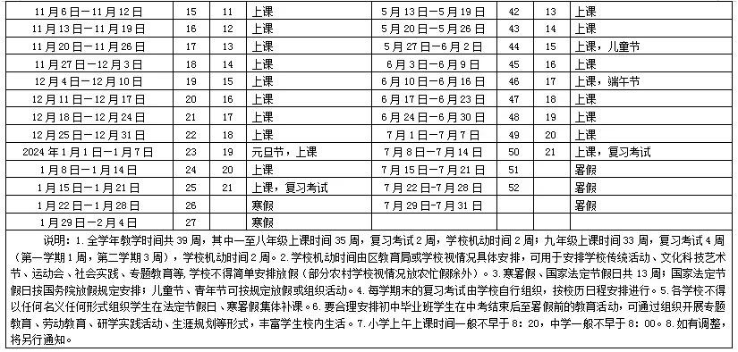 2024年最新校历