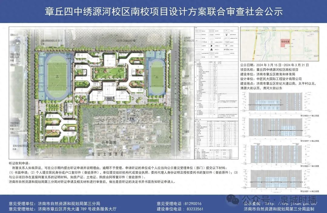 日前,济南市自然资源和规划局发布章丘四中绣源河校区南校项目社会公示。这也标志着章丘四中新校区即将破土动工。