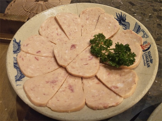 早餐肉。发现这个套餐里面肉还是很多的,这个是早餐肉,但其实就是火腿吧,当然也不是完全的肉,里面应该加了很多淀粉,但是口感还是不错的。