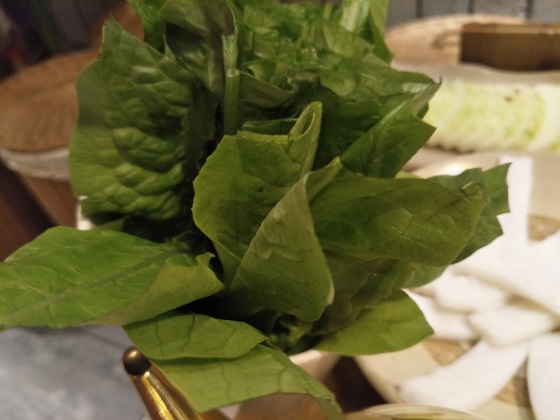 菠菜。在冬天菠菜大量上市,而且是非常新鲜美味,今天的套餐里面也是有一份菠菜来调味,吃火锅的话也不能够光吃肉,荤素搭配才能够更营养更好吃。
