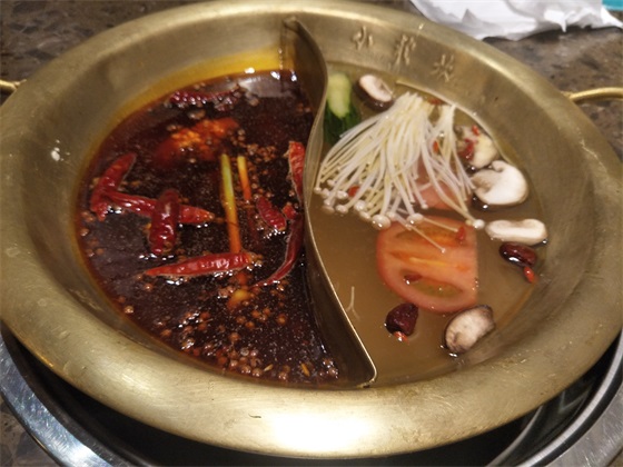 锅底选的是鸳鸯锅,因为小孩子不能吃辣的,所以一般都会选择鸳鸯锅,这样孩子直接吃清汤的。