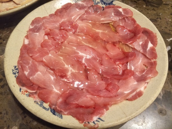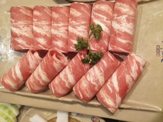 牛肉。这个菜也是一个大菜了,套餐里面有这两样就已经非常不错了,肉是很多的,牛肉切的比较小一些,片的很完美,也是非常容易煮熟的一个肉片。