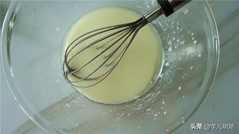 2.将牛奶和玉米油放入碗里,搅打至乳化。