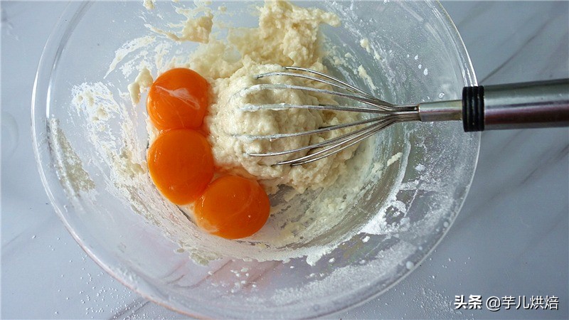 4.放入蛋黄搅拌均匀,放在一旁备用。