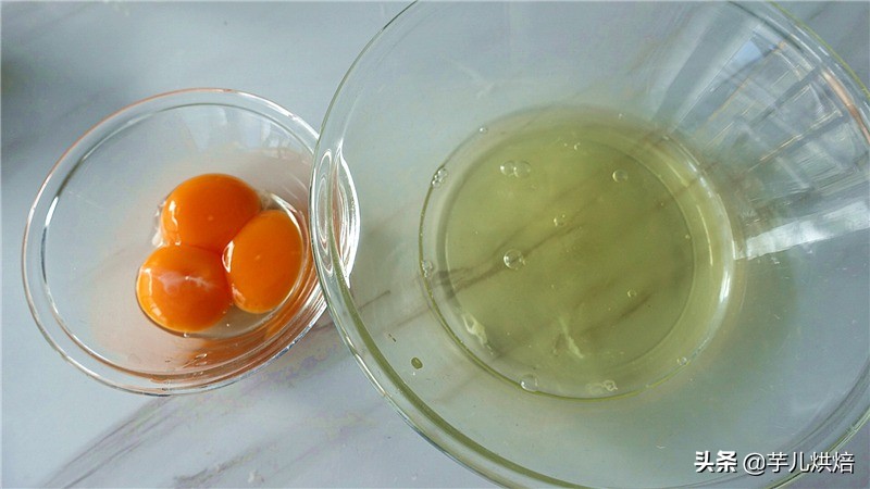 1,将鸡蛋分离在两个无水无油的干净碗里。