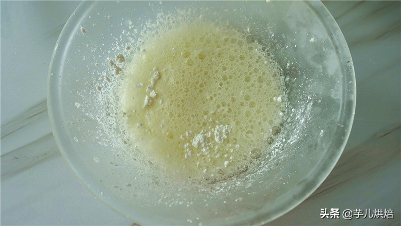 5.蛋白里加入玉米淀粉和几滴白醋。