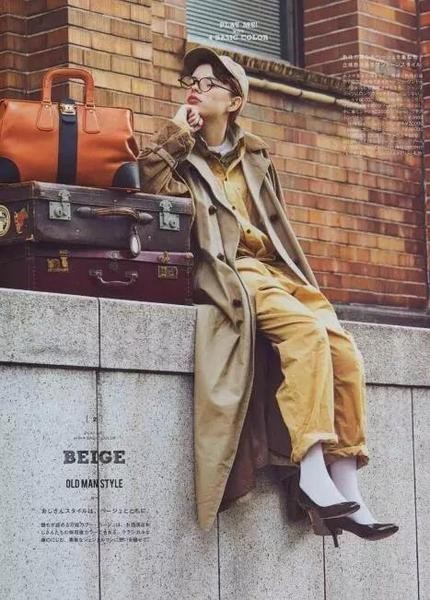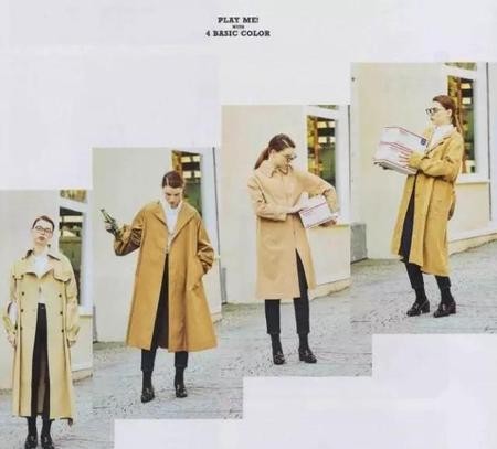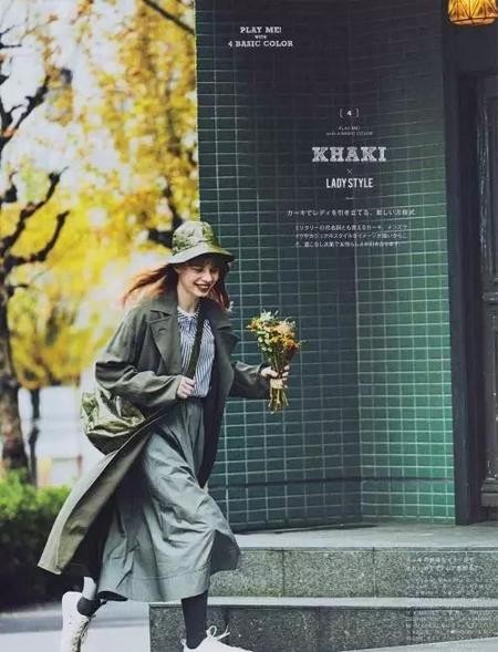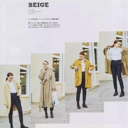 我们平时认为类似这样的米黄为卡其色,就是一个很百搭的基础色,也是风衣最爱出的颜色。