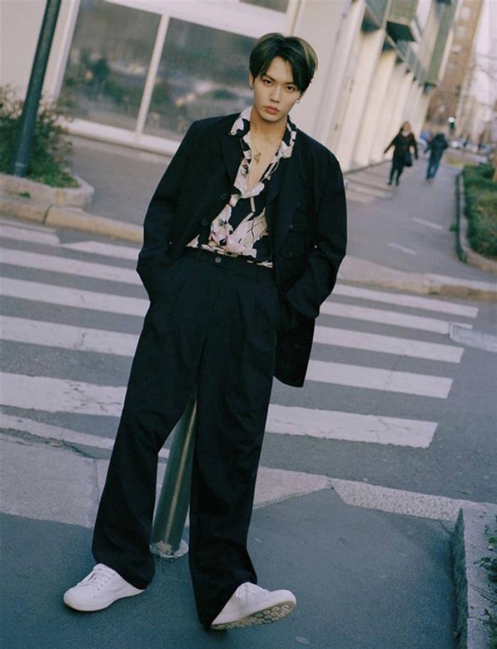 传统的黑色西装很有禁欲风,但再搭配传统的白衬衫会太过正式严肃,大家可以尝试在传统黑色西装里搭配一些颜色比较鲜艳或花纹的衬衫,用内搭的衬衫增加整体look的亮点,形成“繁简”或“暗亮”的搭配。这样搭配的西装穿搭不仅能够很好地消除传统西装的严肃感,风格也十分雅痞,春季选择浅亮色的内搭会让你的春季穿搭更出彩。