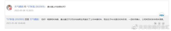 早些时候ST新海就爆出,集兆嘉早在2月份就递交了上市申请材料。