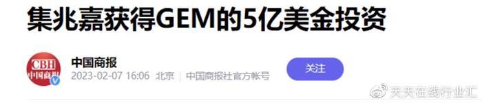 据中国商报消息,今年2月7日,集兆嘉与GEM签订了股份认购协议。根据该协议,GEM将在集兆嘉成功上市时向集兆嘉提供高达5亿美元不可撤销的股份认购安排。