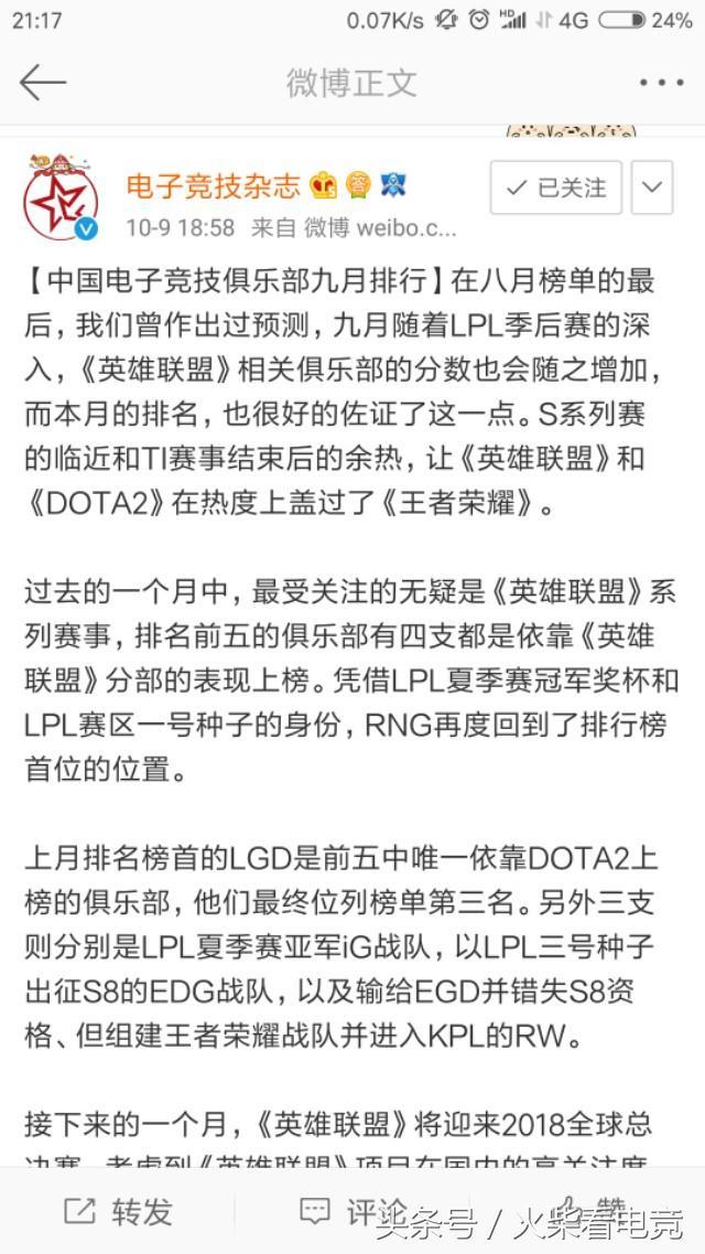 今天七点,电子竞技杂志公布了最新一期的中国电竞俱乐部排名。小编给大家找来了截图,很长很详细!